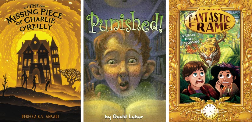 Charlie can’t understand why nobody can remember his little brother Liam, not even their parents. But he’s determined to figure out what happened. And to get him back. The Missing Piece of Charlie O’Reilly is a difficult book to pigeonhole. Not too scary, but tension-inducing. Not historical, but Charlie dreams of the past as if he were a different person, so several scenes take place there. Perhaps a psychological thriller for the middle grade set? Next up: Logan probably shouldn’t have been messing around in the library. Regret sets in when he learns he’s been Punished. Every time he opens his mouth, he speaks in puns. The cure proves to be a threefold challenge that will warm the hearts of word nerds everywhere. And Danger! Tiger Crossing is the first in the Fantastic Frame series. It’s an interesting series concept. There’s a magical picture frame, and at a certain time each day, it’s possible to step through it into the painting currently on display. The paintings are always classics, so there’s a solid dose of art history at the end of the adventure.