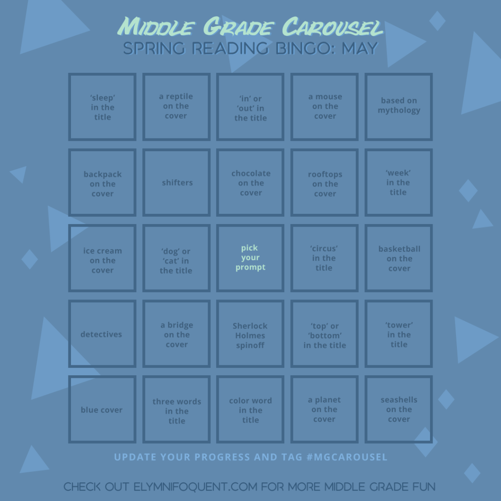 Must confess! I have a big pile of (mostly short) books ready to read in order to stay on pace with #BookADayMay. But I have no idea if any of them will fit the squares for this month’s BINGO board. Let’s find out together! ~CJ
