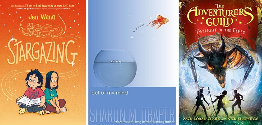 In Stargazing, which is a graphic novel, two girls navigate their differences to become friends. But it isn’t always easy. Out of My Mind tells the story of Melody, who is smart and amazing and hopeful and lonely. She has cerebral palsy, and she cannot talk. Based entirely on appearances, people (including her teachers and classmates) assume she’s mentally handicapped as well. Twilight of the Elves is the second book in series. Zed has the unique chance to learn more about the other half of his heritage, but the elves aren’t finding a warm welcome in Freestone. Meanwhile, Brock’s obligations are forcing him even further into the role of spy, right when Zed needs a friend more than ever. Good stuff!
