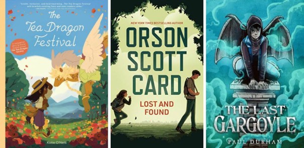 The Tea Dragon Festival is the second in a series of graphic novels. In a remote village where tea dragons belong to the whole village, Rinn forages for roots and mushrooms … and wakes a dragon. Meanwhile, their uncle returns with a friend on a quest of his own. Scenic and adorable. Lost and Found is a middle grade title by one of my favorite authors. Ezekiel has a knack that’s only brought him trouble. He finds lost things. A useless “micropower.” But then a police officer shows up at his door and asks for help in finding a lost child. Suspenseful. And The Last Gargoyle is also by a favorite author! There aren’t many like them. Gargoyles (properly called grotesques) were created to serve as guardians of the people in their buildings. But something wants them gone, and “Goyle” is suddenly the last of his kind in the city.