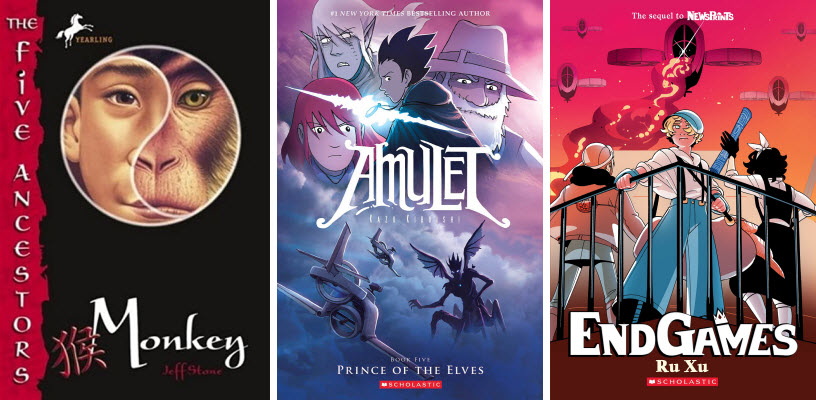 Monkey is the second book in the Five Ancestors series, which follows three students of the kung fu arts. This book is a direct continuation from the previous book, so there’s not much I can say without spoiling the story. Totally hooked, though. Prince of Elves is the fifth book in the graphic novel series Amulet. Because everything builds on what’s come before, I can’t say anything that wouldn’t be a spoiler. Suffice to say … it’s good! EndGames wraps up the storyline begun in Newsprints. Bit of a (discourse-heavy) rush to the finish. Would have loved it if Xu had the luxury of two more volumes to flesh out all these new characters more. (Because they’re all so intriguing!)