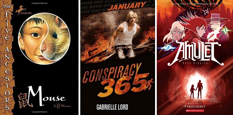Mouse is the sixth book in the Five Ancestors series. Still loving my kung fu advenures. January is the first book in a (you guessed it) 12-book series set in Australia. Callum Ormond doesn’t have much to go on, but he knows he needs to get away, stay hidden, and solve the riddle his dead father left behind in the form of several drawings. Because he’s already been blamed for a crime he didn’t commit. Action-packed! And then Firelight continues the Amulet series of graphic novels.