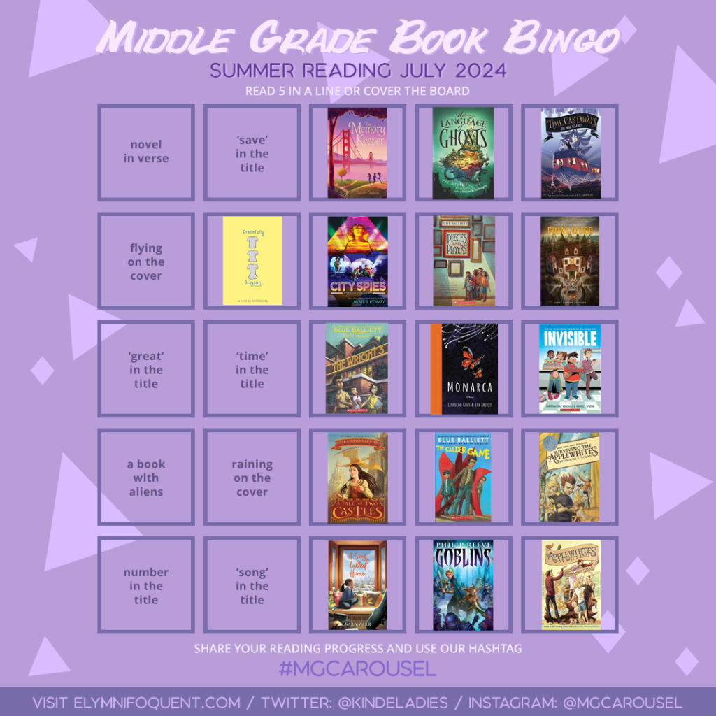 Looking forward to August BINGO! You can play along by grabbing a blank board from Middle Grade Carousel, a blog I run with my daughter Elza.