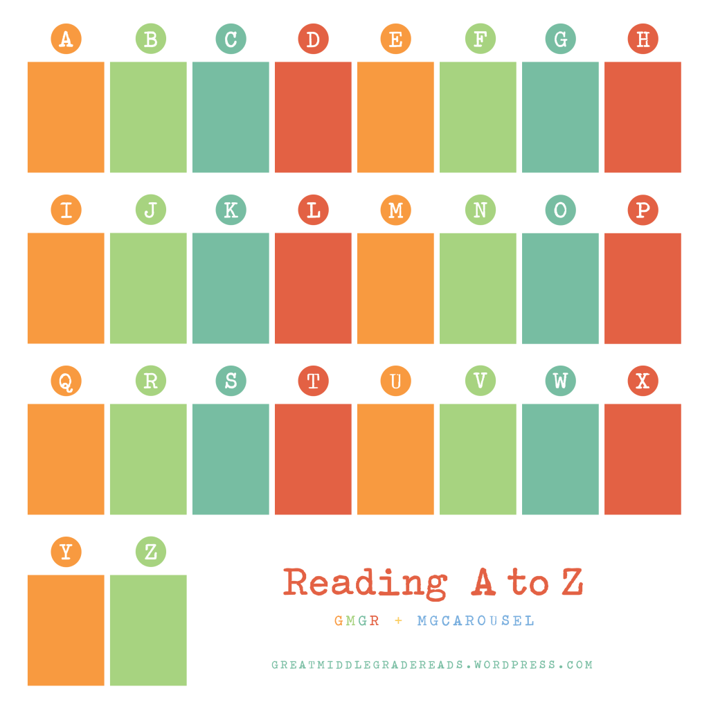 New Graphic. As one of the moderators at Great Middle Grade Reads, one of my main jobs is setting up annual reading challenges. The A to Z Reading Challenge is a longstanding favorite for the group. Now we have a pretty new graphic that begs to be filled in!
